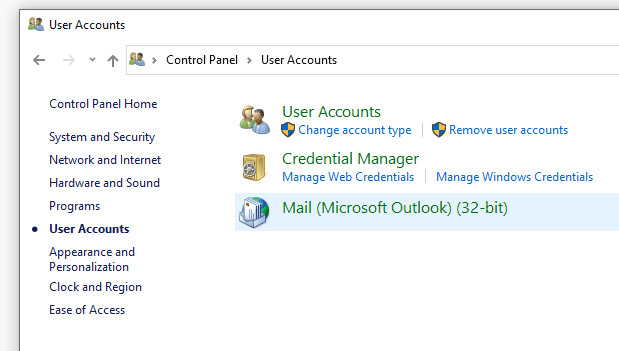 1. Open your Windows Control Panel and select the Mail icon.