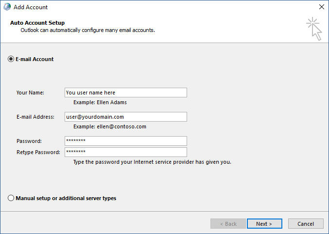 How to add an Exchange account in Outlook 2013, 2016 or 2019